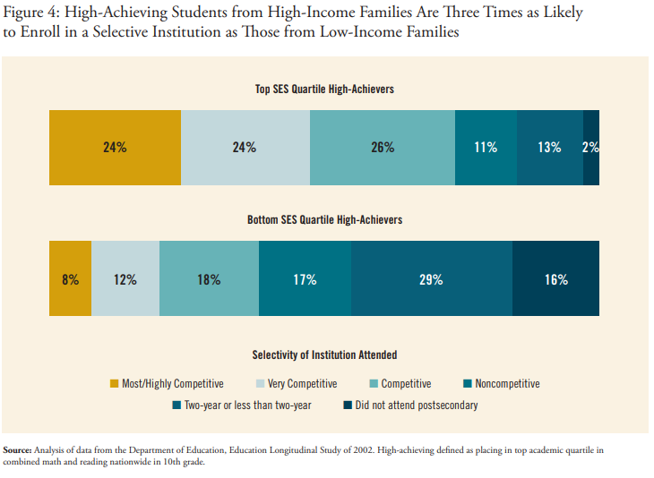 在好意思国,来自高收入家庭的高设立学生进入精英学校的可能性是低收入家庭的三倍