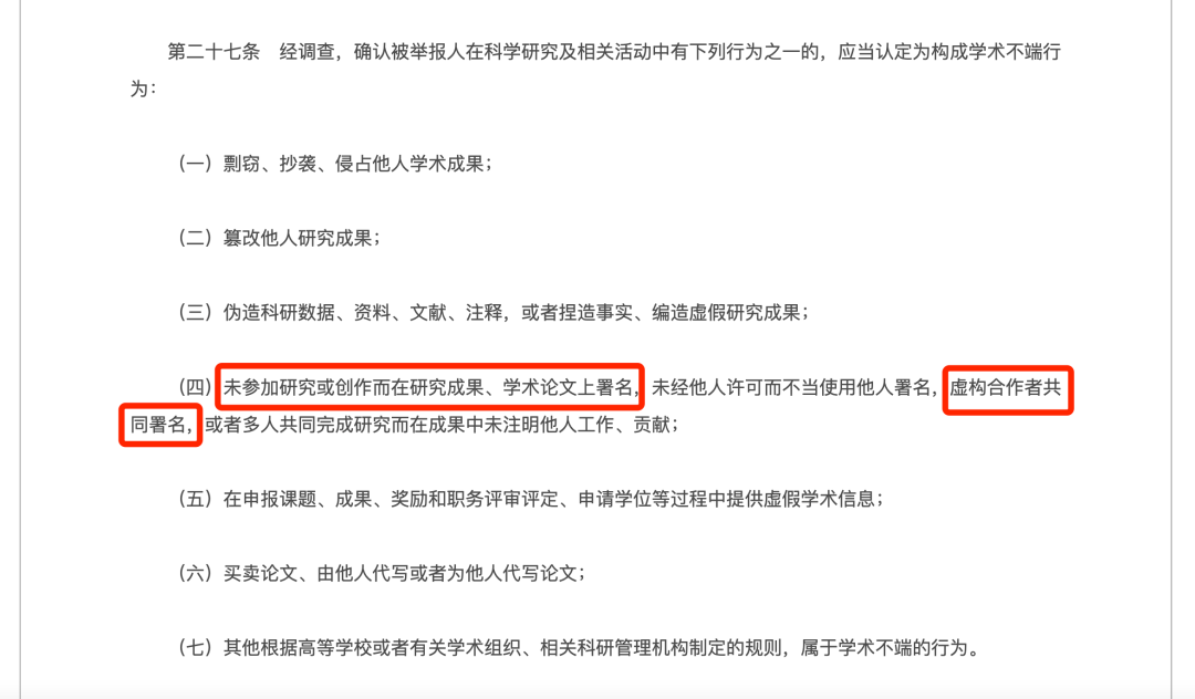 我国对学术怪异行径有明确界定。种植部《高级学校驻扎与处理学术怪异行径目的》明确章程,“未参加磋议或创作而在磋议效果、学术论文上签字”“诬捏配合者共同签字”等均属于学术怪异行径。