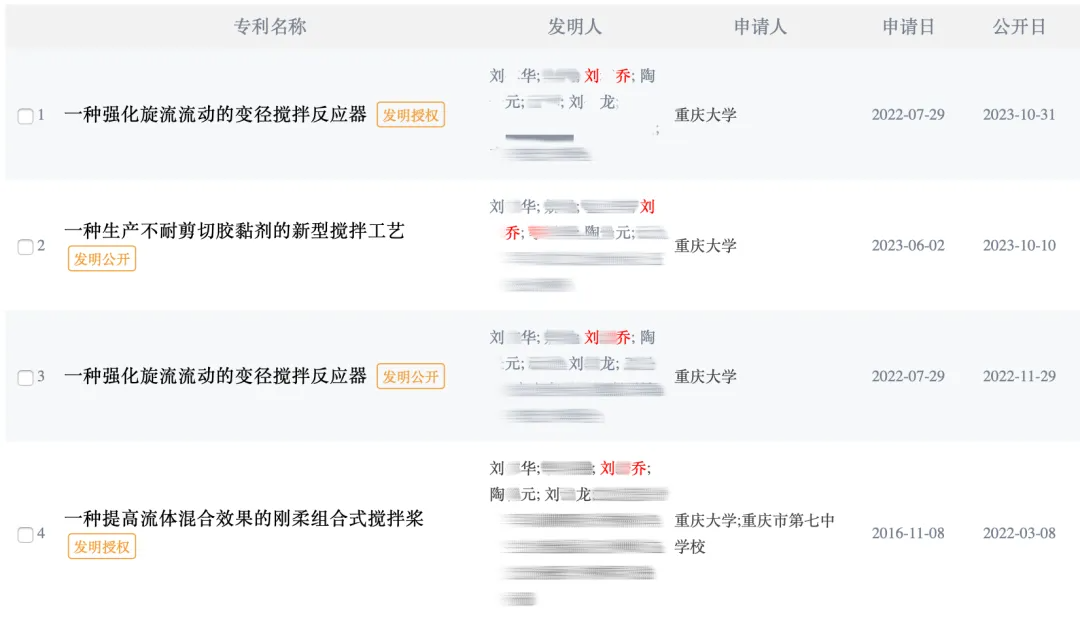 媒体珍视到,这些论文和专利中,第一作家多为刘某华,是重庆大学磋议生院副院长、肃肃。多家媒体报谈称,刘某华与刘某乔为父女关系。